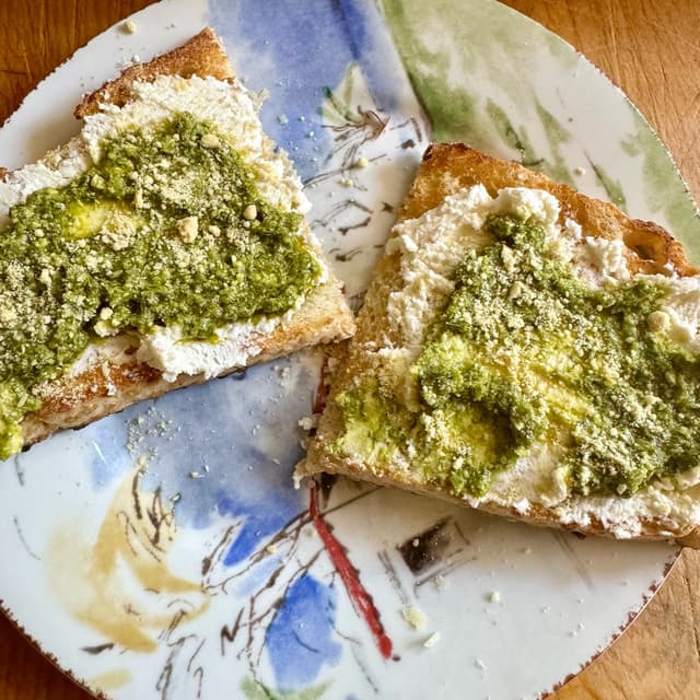 I really like this ricotta, though it is pretty pricey (usually around $10), so I don’t buy it very often. I most often use it in lasagna or manicotti, but I got the ideal from the wonderful Rainbow Plant Life to put it on toast (here with pesto on top). It was good, but would be even better with better bread (like a ciabatta). I will try more toppings - I think cherry tomatoes would be good!