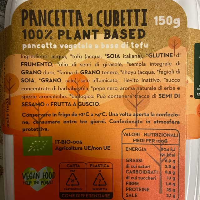 Veg cubetti di pancetta a base di tofu, ottimi per una veg carbonara o per ripieni nei rustici #pancetta #fakemeat #nomeat