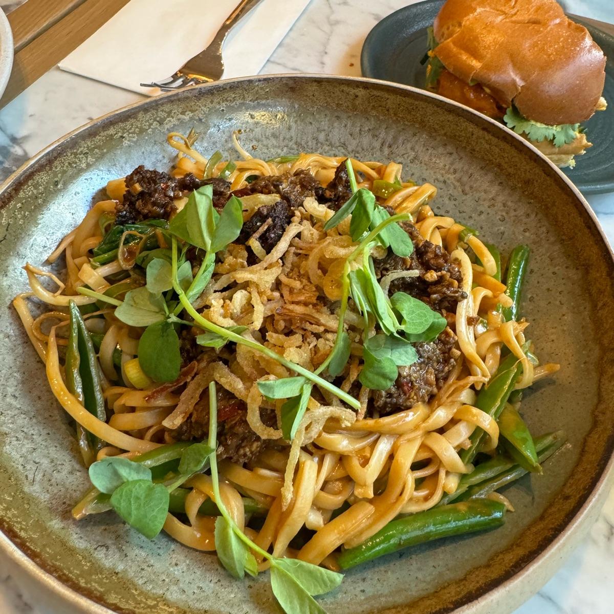 Surprisingly yummy. I’m always a little skeptical to try Asian dishes in non Asian restaurants but this was good! Had some veggies too