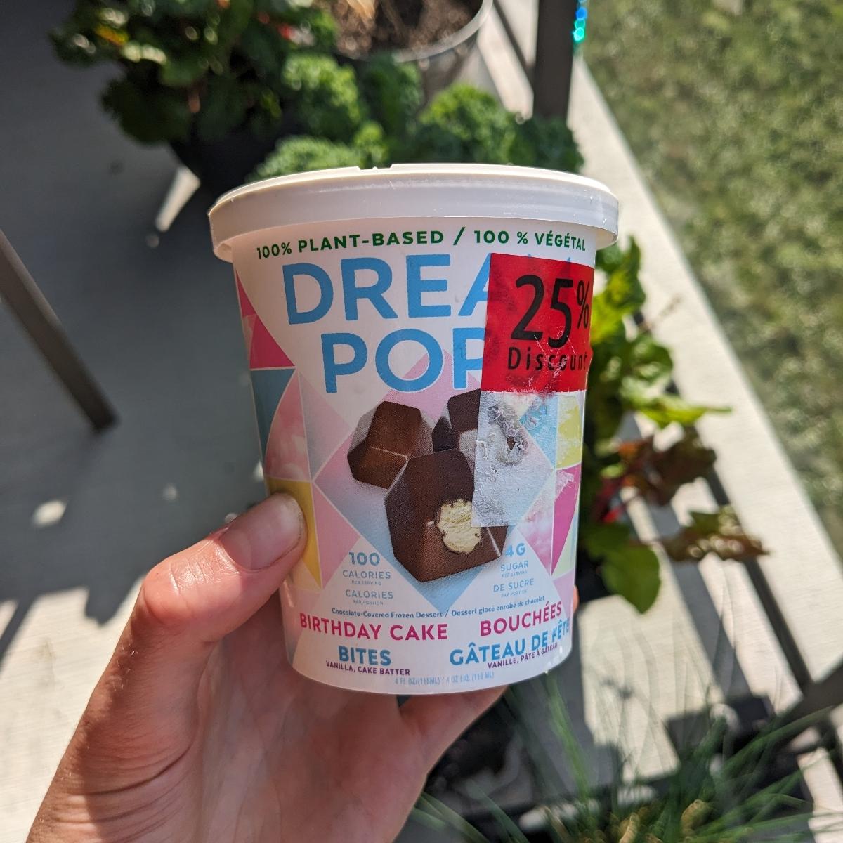 These aren't as good as I was expecting. They have a pretty strong alcohol flavour (I assume from the "birthday cake" extract?), and really don't taste like birthday cake. That's a hard flavour to turn into an ice cream bite. The chocolate coating is delicious though. It's perfectly thin and sweet. Also I would never buy it at the full price of $8.99 wth?? #birthdaycake #icecream #ditchdairy #veganchocolate