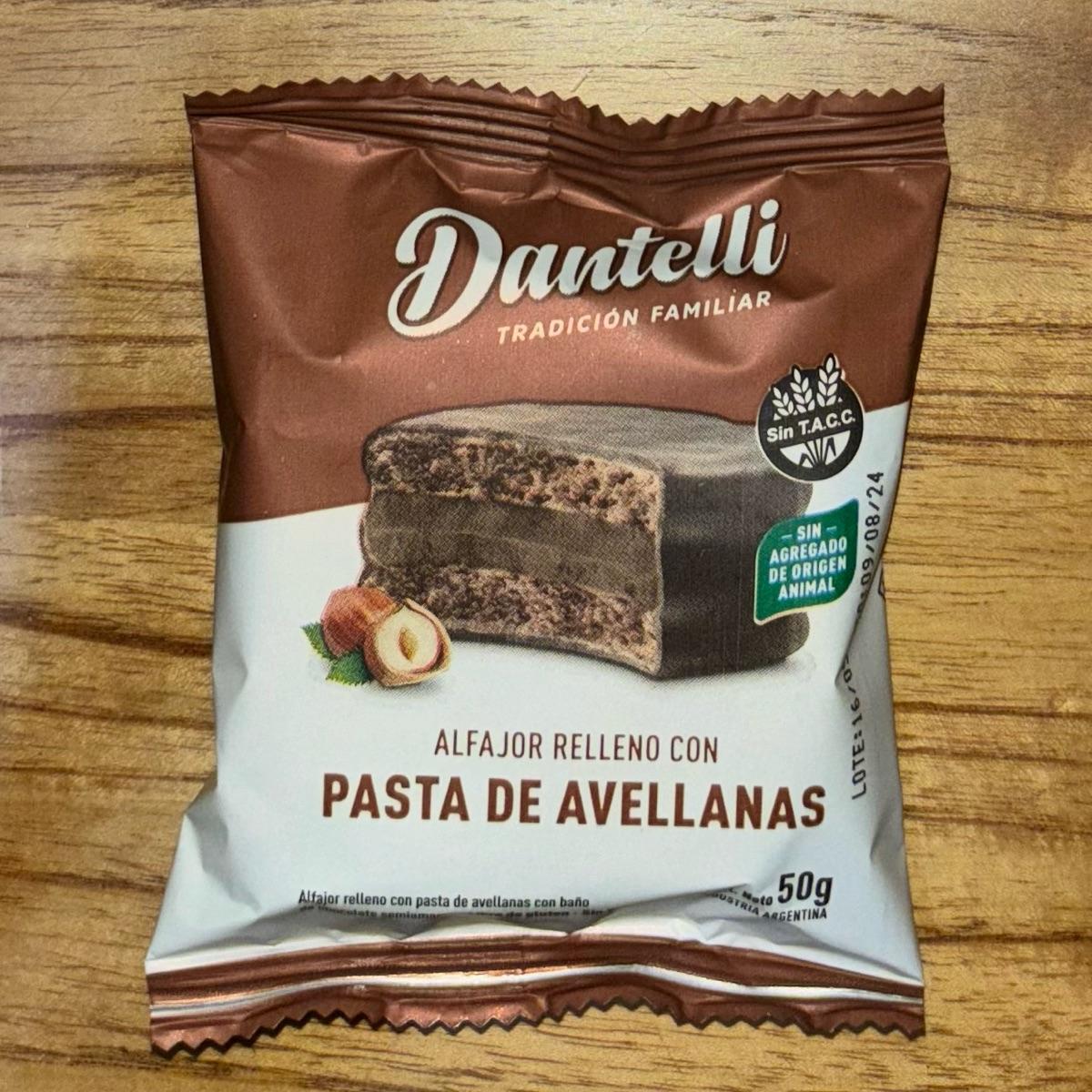 Alfajor de chocolate con pasta de avellanas de Dantelli: es rico, la pasta de avellanas le suma mucho al ser algo distinto. Lo único que no me gustó es que la galletita se pone muy dura si lo dejo en la heladera, para mi gusto, prefiero los que son blanditos. Lo conseguí en Le Panem.