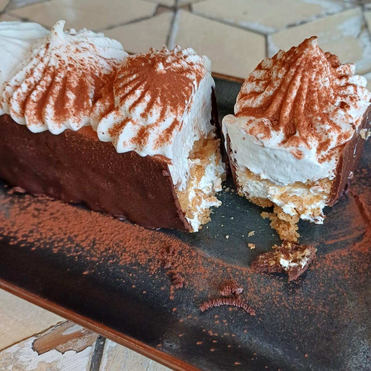 Tra i dessert questa volta ho scelto il Tiramisù. Ovviamente é una rivisitazione, con quell'involucro di cioccolato che scrocchia al taglio e la forma di parallelepipedo.