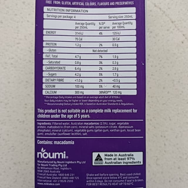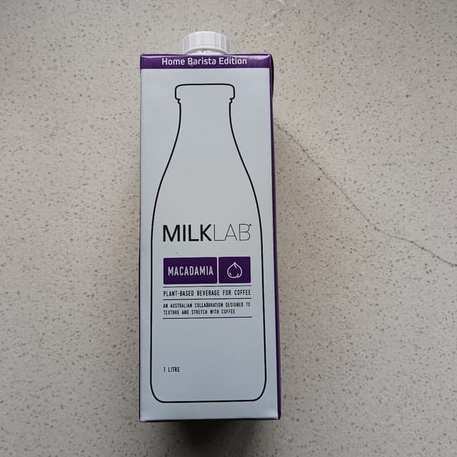 Hmm, a bit pricy but an okay milk. Macadamia with added sugar - will hold for a while in coffee (and you'd hope so, it being specially a 'barista' version). #mylk #macadamiamilk