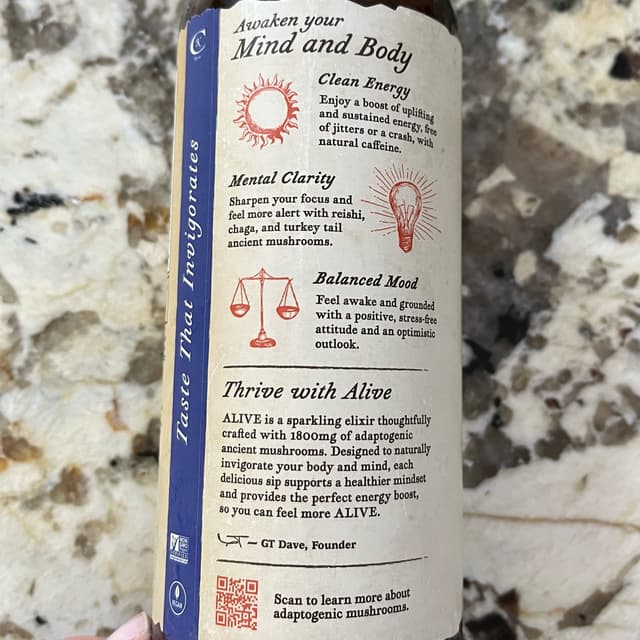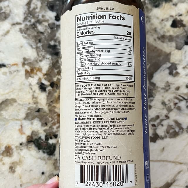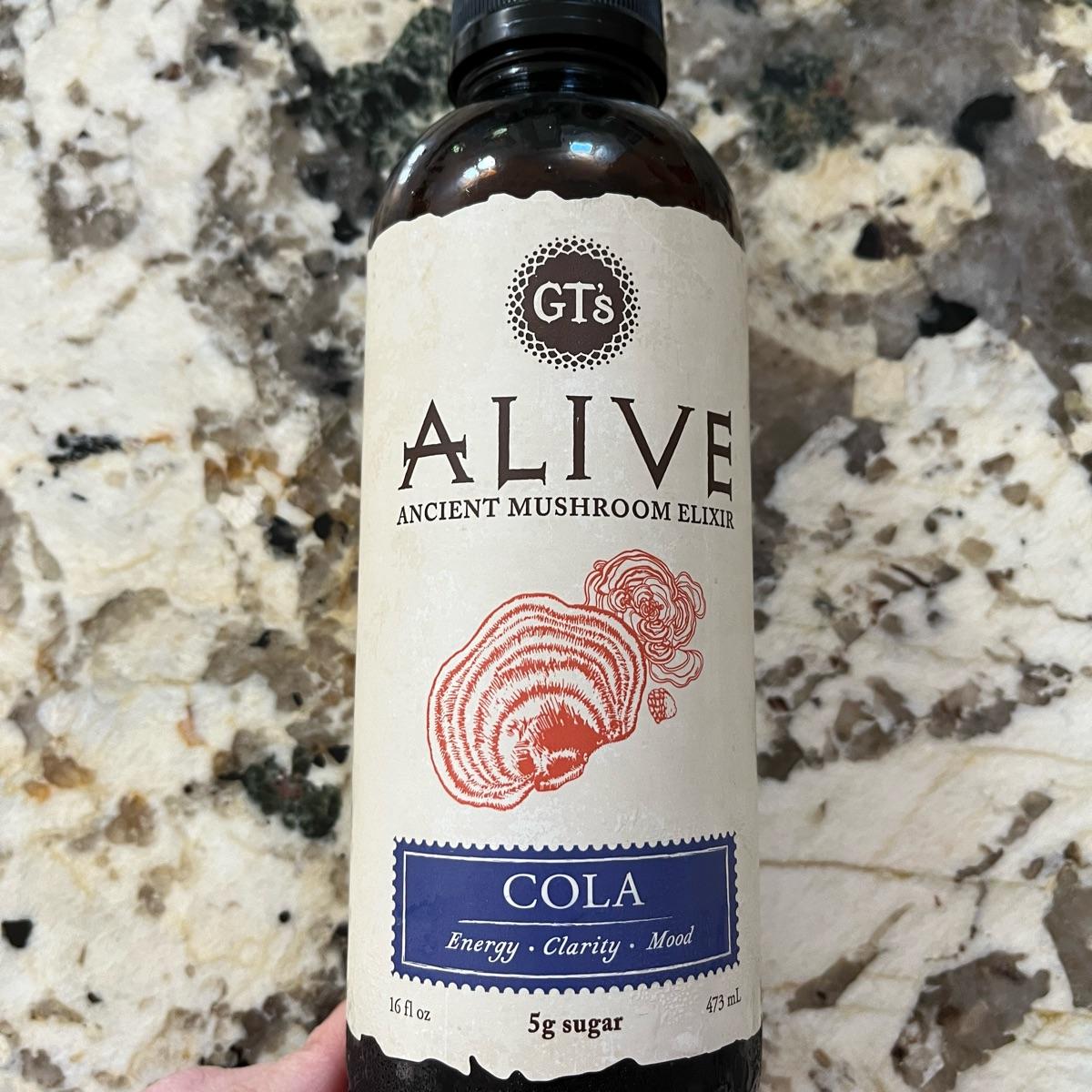 🇺🇸Great to be in the land of GT’s Synergy and have #kombucha as much as I like. 😃 These GT’s Alive version were on sale so I decided to give them a go. This has ancient #mushrooms 🍄🟫with #adaptogen that are supposed to give you natural energy, benefit your mental health 🧠and balance your mood. It had a taste of cola for sure but then also a bit of apple 🍎cider vinegar. I’m used to that I guess and it was fun for me. It’s based on🫖 #blacktea. I’m not sure I’d get it again. These bottles are so big I drink it over three days. #kombuchalover