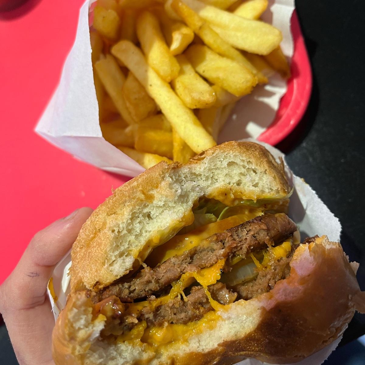 Probé esta burger con doble medallón de not co, doble cheddar, tomate, lechuga y mostaza, estuvo muy rica!