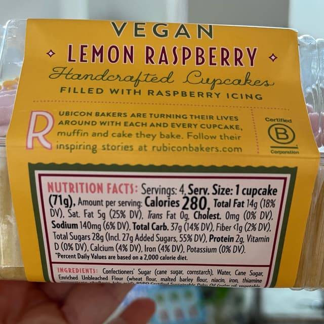 šŗšøš§ Iāve seen reviews for this #bakery for years and drooled. Apparently they are not solely vegan but have many #veganfriendly products you can find in the US grocery stores. My mom picked these #lemon šand #raspberry #cupcakes. #berrylover The artwork and cupcakes are so pretty! There is raspberry frosting inside too which was a surprise but they were really nice and #omnivoreapproved. My mom couldnāt tell they were vegan. The cake was moist and itās all sweet of course. I wonder if they can improve the recipe as itās so bad on Yuka. It has palm š“oil too, boo. Iāll poke. Itās a #bcorp so more deserving of our hard earned dollars and #kosher perhaps? It has a KSA Dairy symbol which is a new one for me thatās connected to kosher.