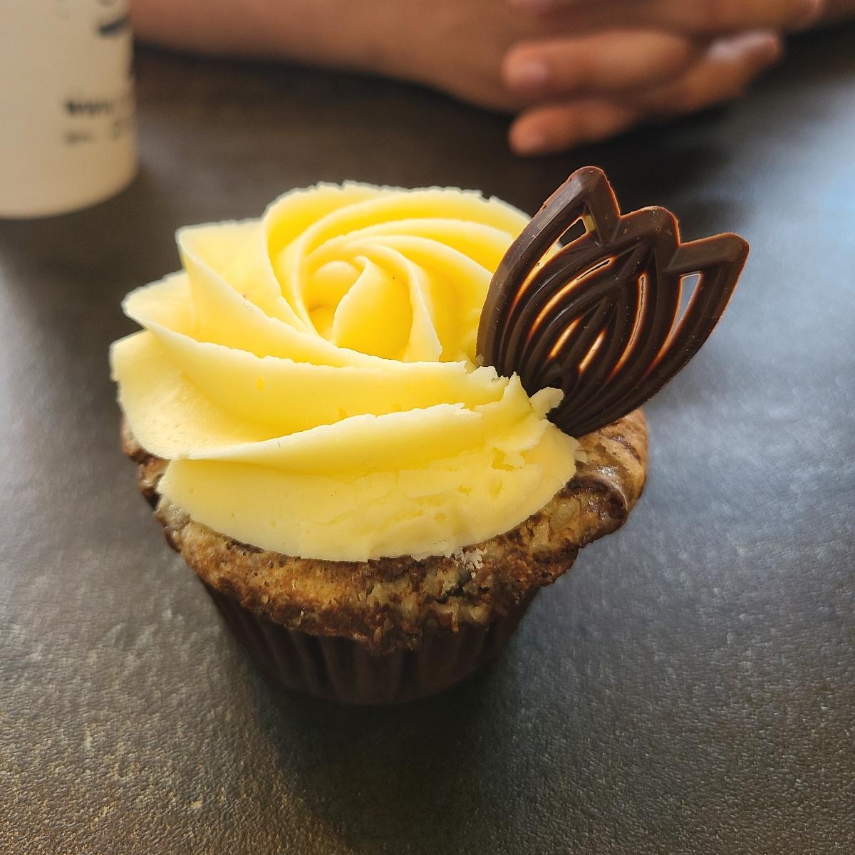This marbles cupcake was so moist and delicious! The frosting was a vegan buttercream with a chocolate detail.