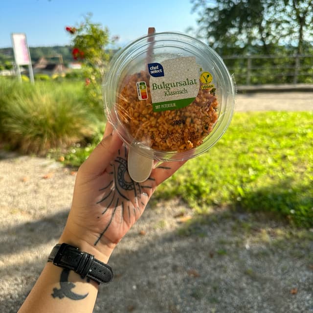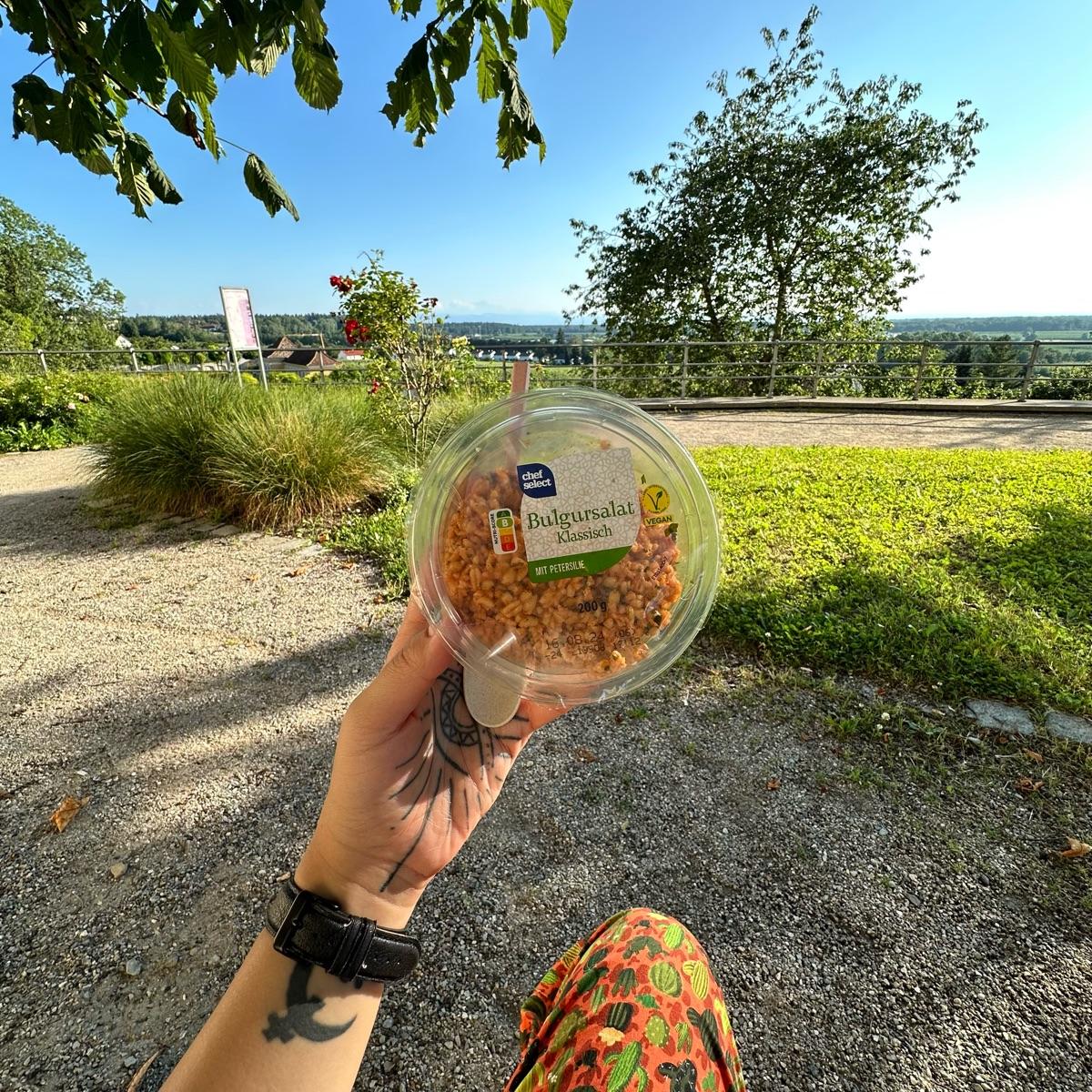 Swipe left for a foggy view of the alps! 😶🌫️ Turns out there’s a Lidl not 5 minutes from where I’m staying so that’s great! Plenty of #plantbased options like this #bulgur salad 🥗