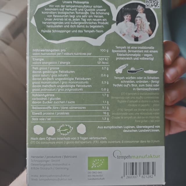 Eccellente. Da amante del tempeh ho finalmente trovato il prodotto che unisce il mio alimento preferito alla possibilità di consumare i lupini altrimenti introvabili. Buonissimo.