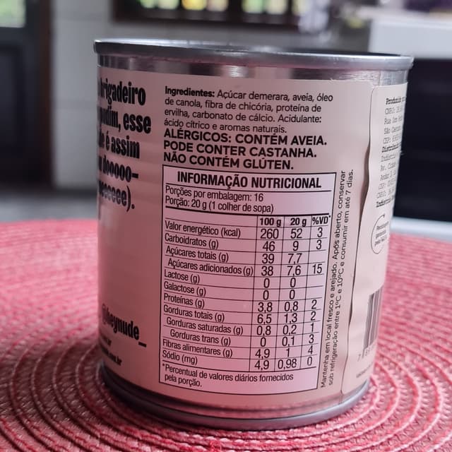 Condensado de aveia 100% vegano, sem glúten e com adição de açúcar demerara. Textura firme e muito saboroso. Amei!