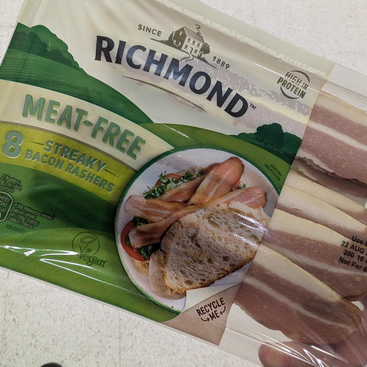 Still on the lookout for interesting new plant-based bacons. So far I am still most impressed by the bacon of THIS - others such as this one from Richmond tends to remain very bacony-looking and it's very nicely done with the white parts too. But it doesn't fry as well and remains rather artificial and stiff, when you want it to sizzle and really look and taste like bacon. It's not quite there yet, but it isn't awful either.