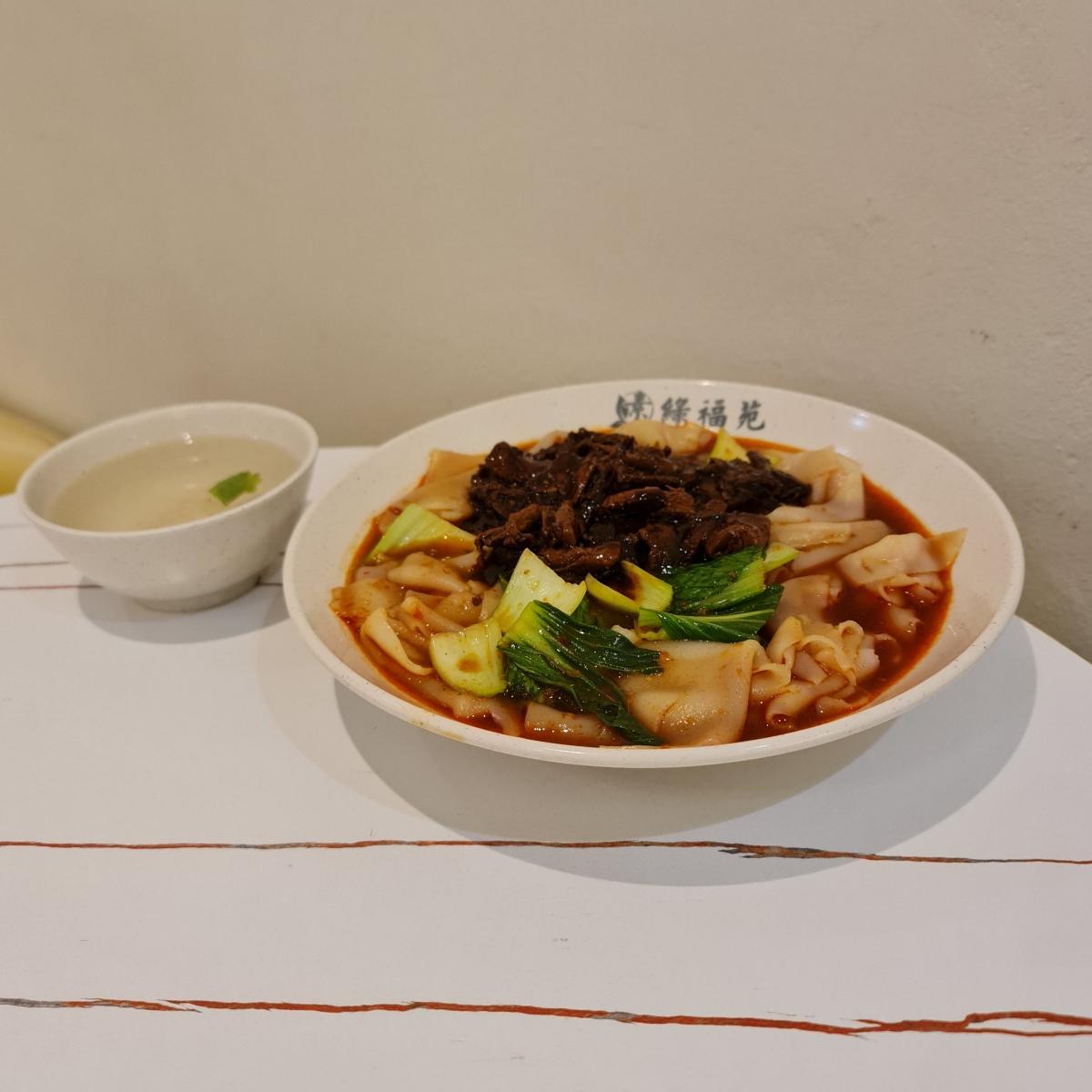 Its #duck day, braised to a dark chewy, shreddy state on a bed of uber broad #ricenoodles aka #horfun which I'm never a fan of. Much prefer Malaysia's baby thin version (like those found in Ipoh or Penang) for easy pick up and better gravy to #carbsforlife ratio. Savoury soup on the side a tad vegetable weak too