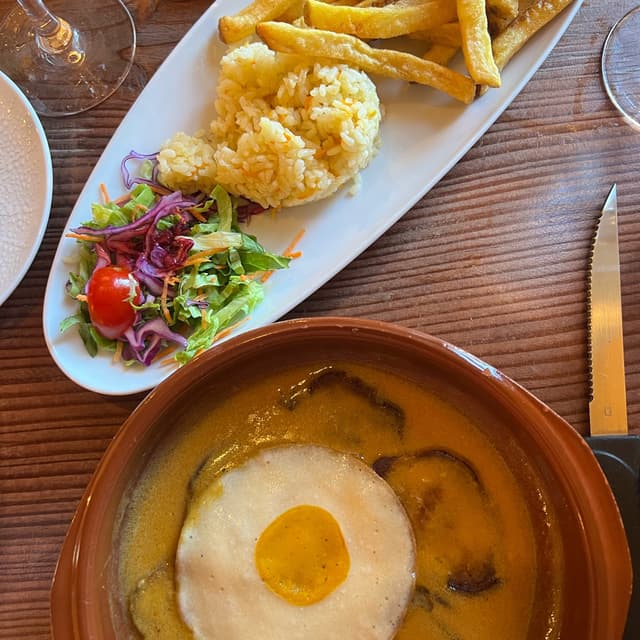 Wow. What a place! The ambiance is amazing and the staff so welcoming and friendly. I loved that they serve the vegan versions of traditional Portuguese food. This dish had a lovely mustard taste - the seitan was flavoursome and has crispy exterior. I loved it!