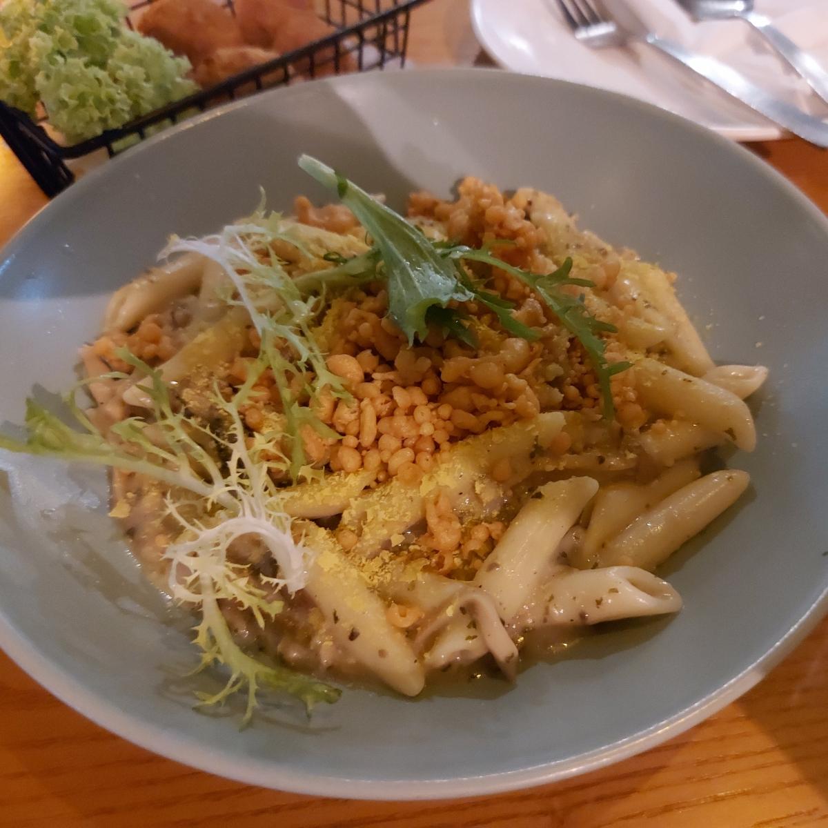 Catching up on reviews - the fact that I forgot to add this one probably says enough about what I thought of this #truffle pasta dish. It was OK, just very same-ish, and I didn't end up finishing it. No idea what the hard cheesy balls sprinkled over the top of the pasta were, but they tasted very odd! 😅 #pastalover #vegantravel