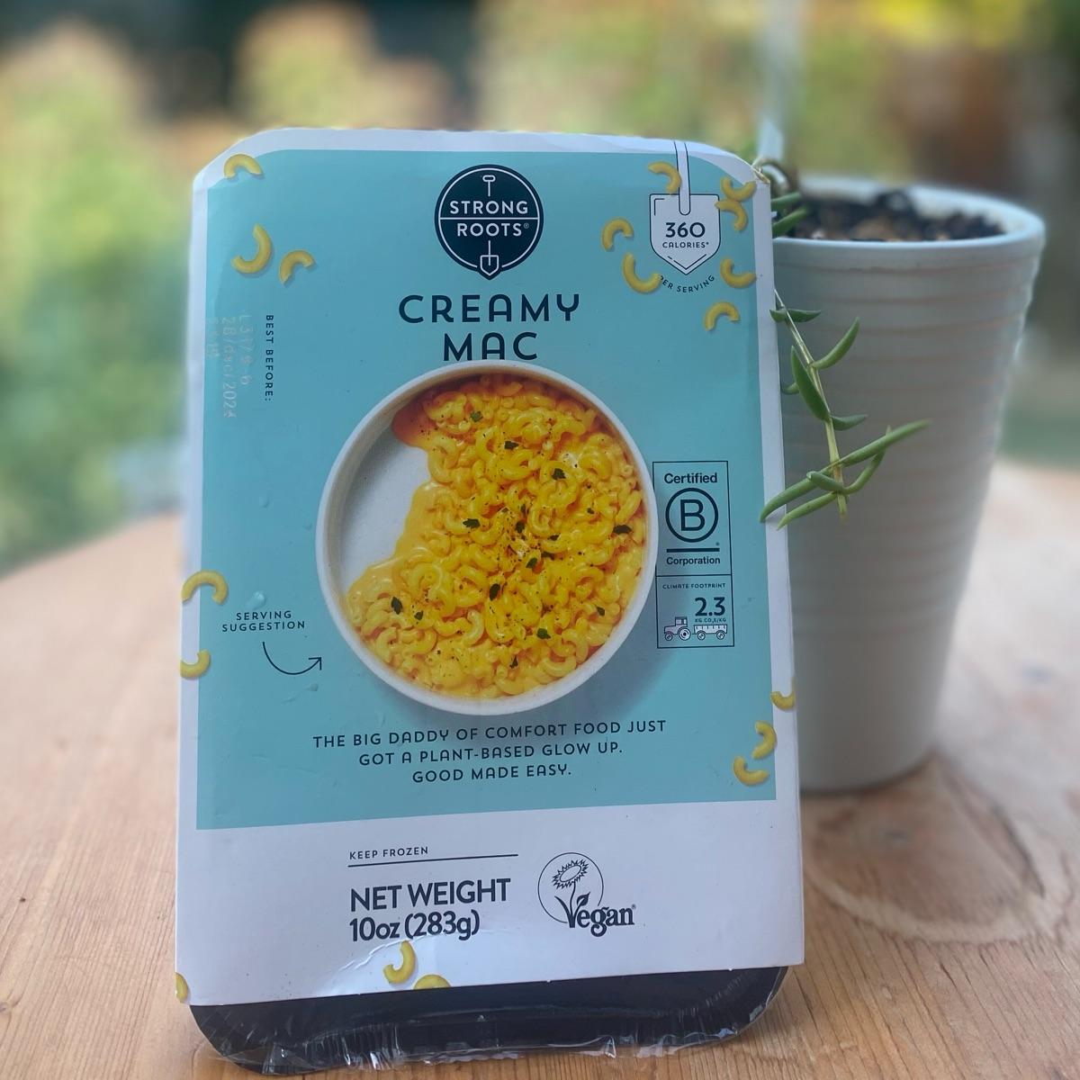 This Creamy Mac by Strong Roots—a #bcorp company👏 —is yummy! After trying one of these for my first time, I’ve since bought more at Grocery Outlet and really enjoy them. They come frozen and are meant to me microwaved, but I just empty them out of their paper container box (love that it’s not plastic!) and heat them up on the stove after adding a little oil to the pan. The serving size is perfect and not too little, and I of course add peas 🫛 to mine. I’ve tried both the Creamy Mac and the Chipotle Mac, and both are delicious. One package of these offers 9g of #protein , 136mg of #potassium , 34mg of #calcium , and 1.4mg of #iron .