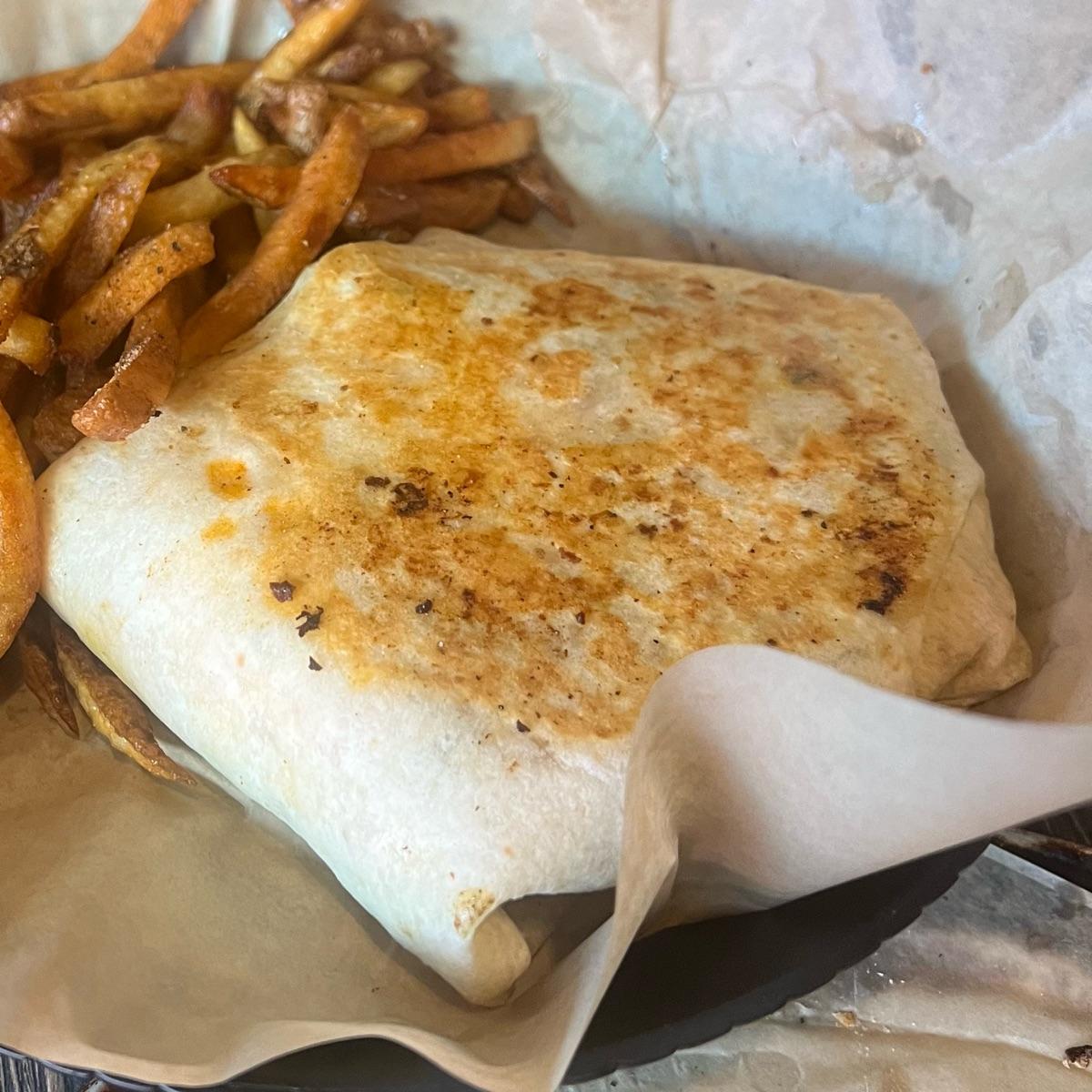 pig minds makes a great #impossibleburger so i figured i’d give this wrap a try. the #burger was cooked to perfection and the wrap was filled with #lettuce, pico, #vegansourcream , #cheddar, and tortilla chips. i was surprised that it wasn’t soggy! it held together pretty well and i enjoyed my eating experience. if this wasn’t a weekend special, i honestly think i’d order it again!