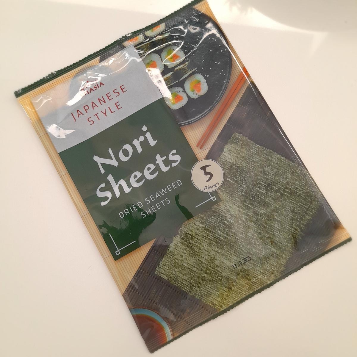 They are made with 100% #seaweed and are packed with nutrition - almost 50% protein! Found at #lidl, priced at 1,59€ for 5 sheets.