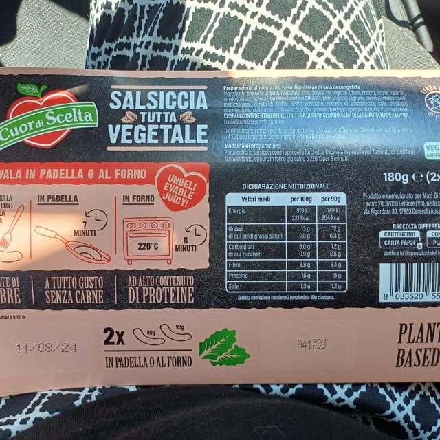 Gustosa salsiccia vegan con un buon contenuto di proteine. La compro non spessissimo essendo un prodotto processato e confezionato ma la considero un ottima alternativa salva-cena, si prepara in padella in pochissimi minuti.
