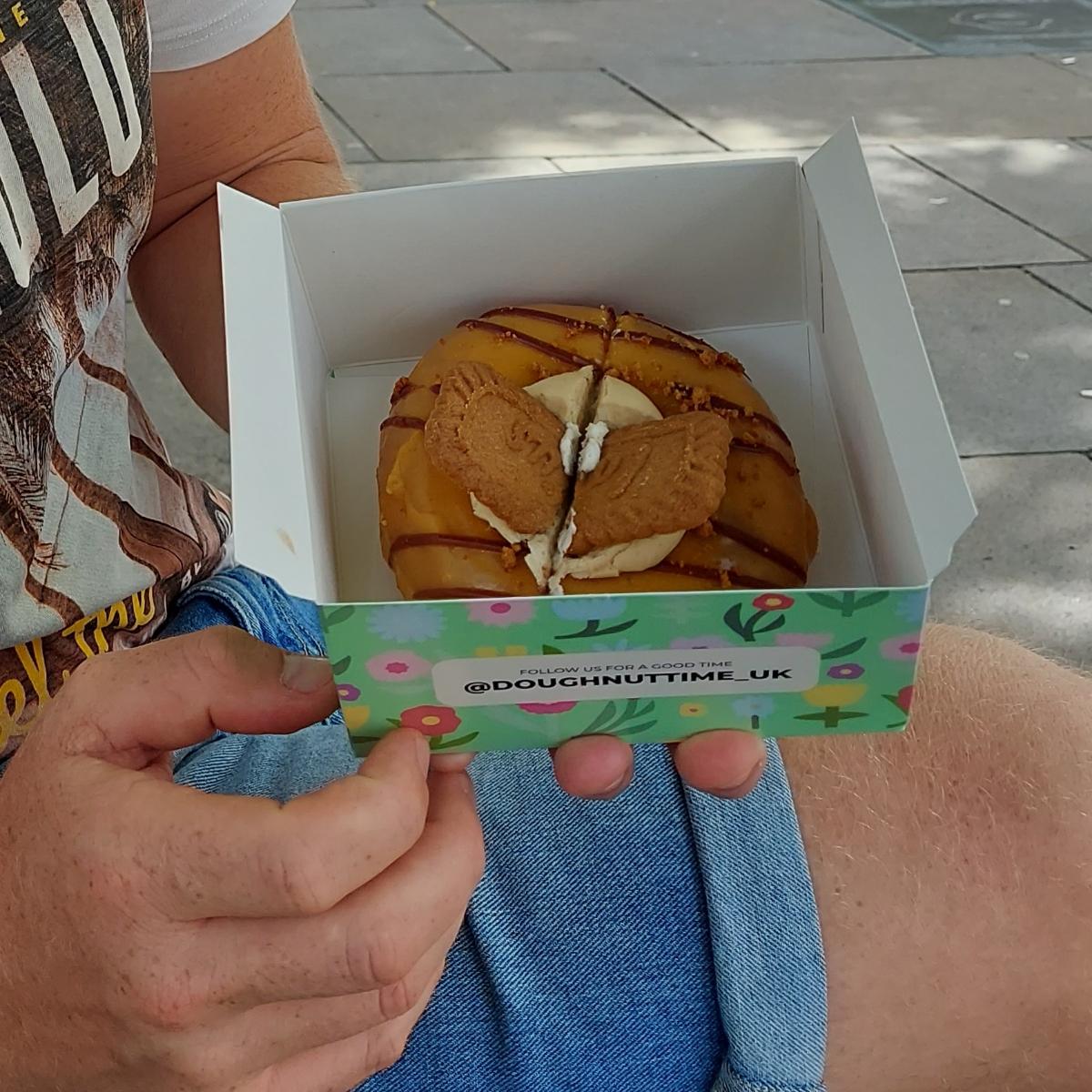 Prima ciambella vegan da doughnut time...prima di una lunga serie in quanto ha creato dipendenza! Tutte le ciambelle sono palesemente una bomba calorica zuccherosa ma per questo irresistibili! Questa era ripiena di crema biscoff (lotus) ed é rimasta la mia preferita (anche se penso che mangiata intera possa risultare un po' nauseante).