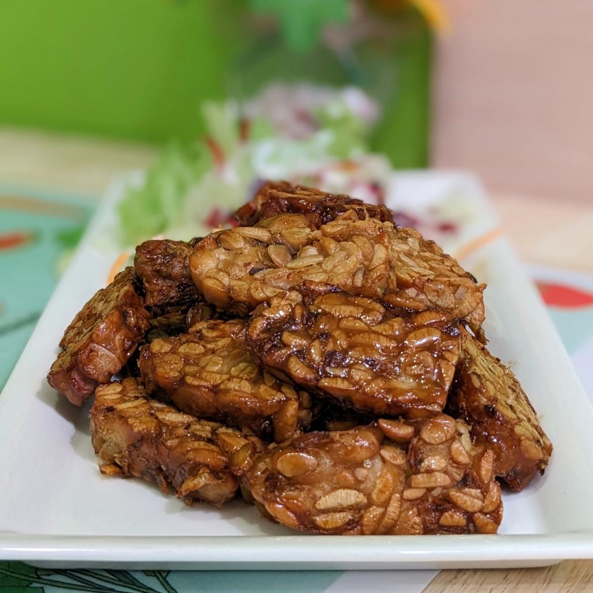 Tempeh slices with a delicious marinade that was evenly absorbed throughout (no overwhelming 'soy' taste or bitterness). Pan-fried to a perfect crisp without being oily. 🫘🥢 LOVED THIS, I've eaten my fair share of tempeh at F&Bs and this was easily among the best I've had!! Highly recommend ordering this~ (Allium-free, $8) #sgvegan #chinesefood #alliumfree #wholefoodplantbased #wfpb #organic