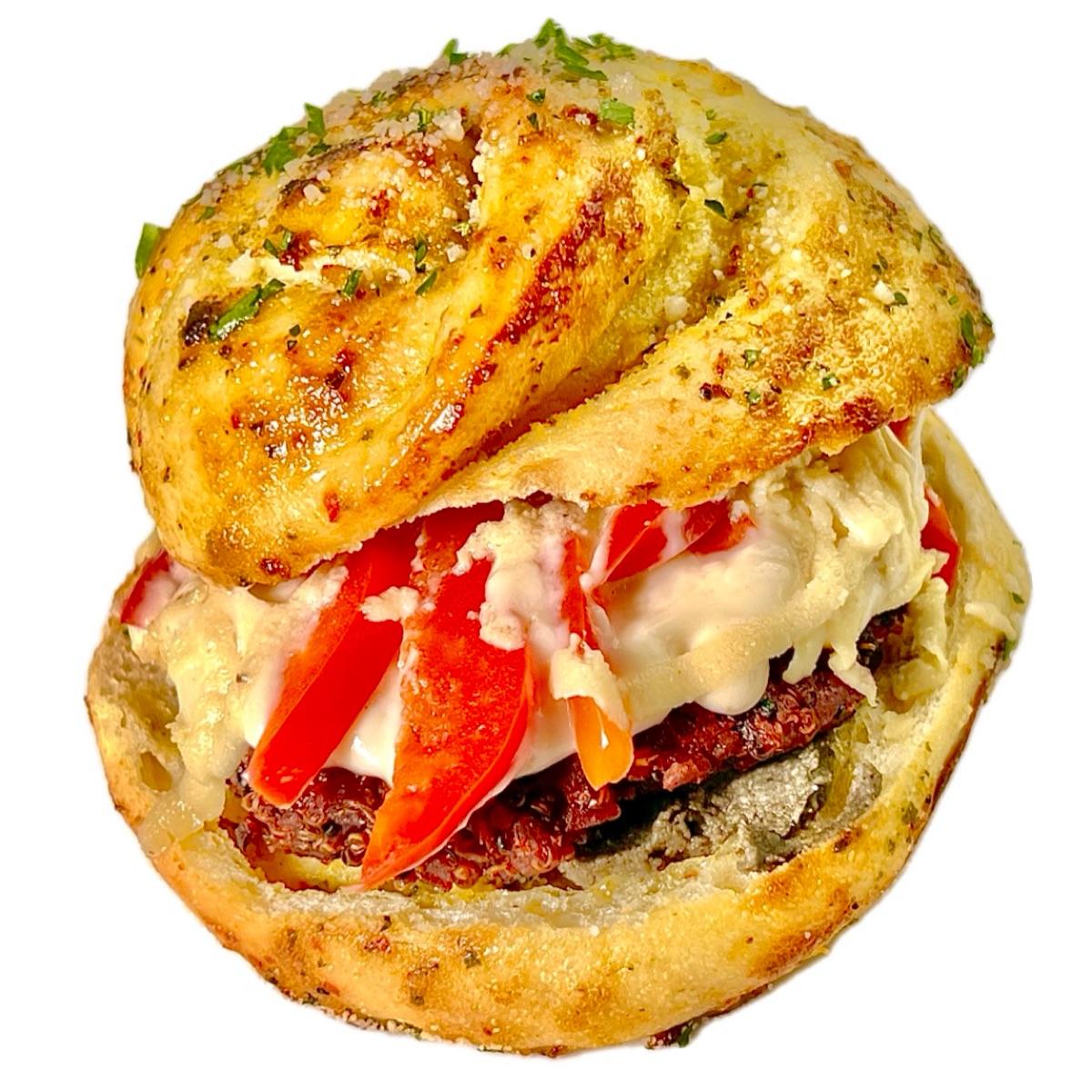 This consisted of an earthy, savory beet and quinoa vegan burger patty, crave-worthy Vtopian Artisan Cheeses 🌱-based aged white cheddar and black garlic cheese spread, pimento peppers, and charred onion mayo inside a giant, fluffy, buttery garlic knot bun. This hearty, flavorful vegan burger will satisfy anyone’s cravings for a juicy burger without harming any animals. It is a special for Portland Burger Week, which runs through Sunday, 8/25/24. All the burgers created for this event are only $8.