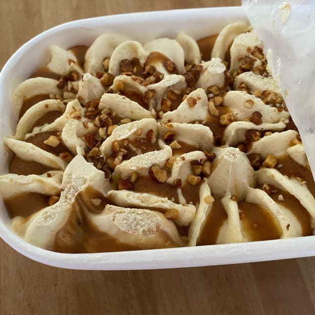 uno dei gelati confezionati più buoni mai provati! la vaniglia del gelato si sente ed è delicata e non artificiale, molto naturale. la variegatura è più al caramello dolce che salato ma incredibilmente buona e golosa. top!