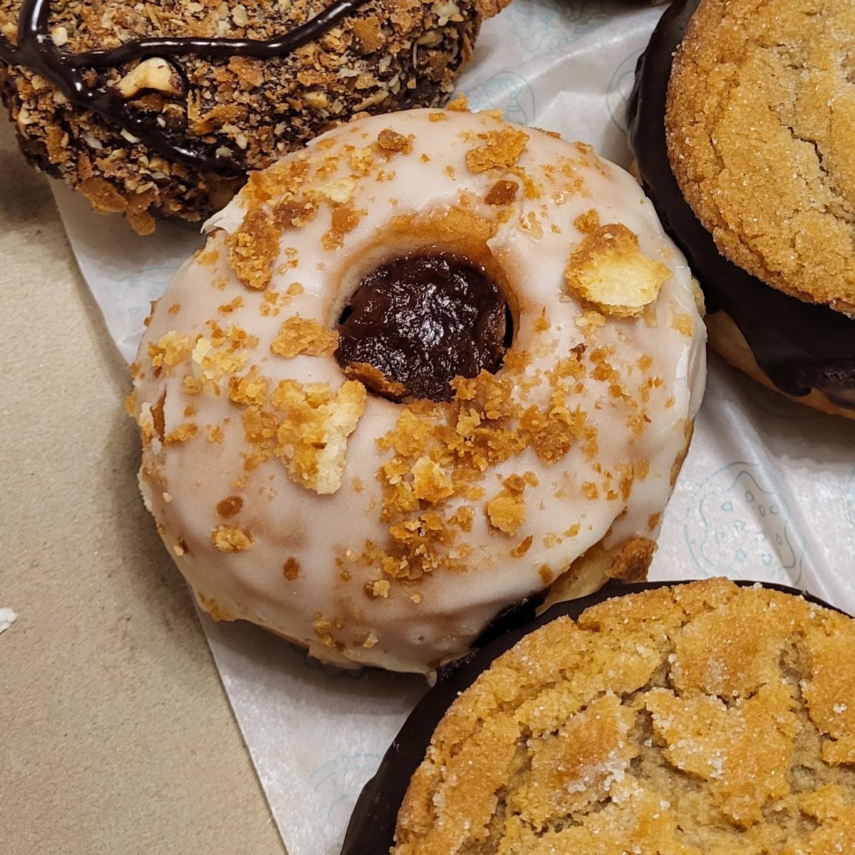 "Super tasty toppings on top of a plain donut. Jam on top was delicious. Double marks for veganism. 😚👌(Chef's kiss)"
