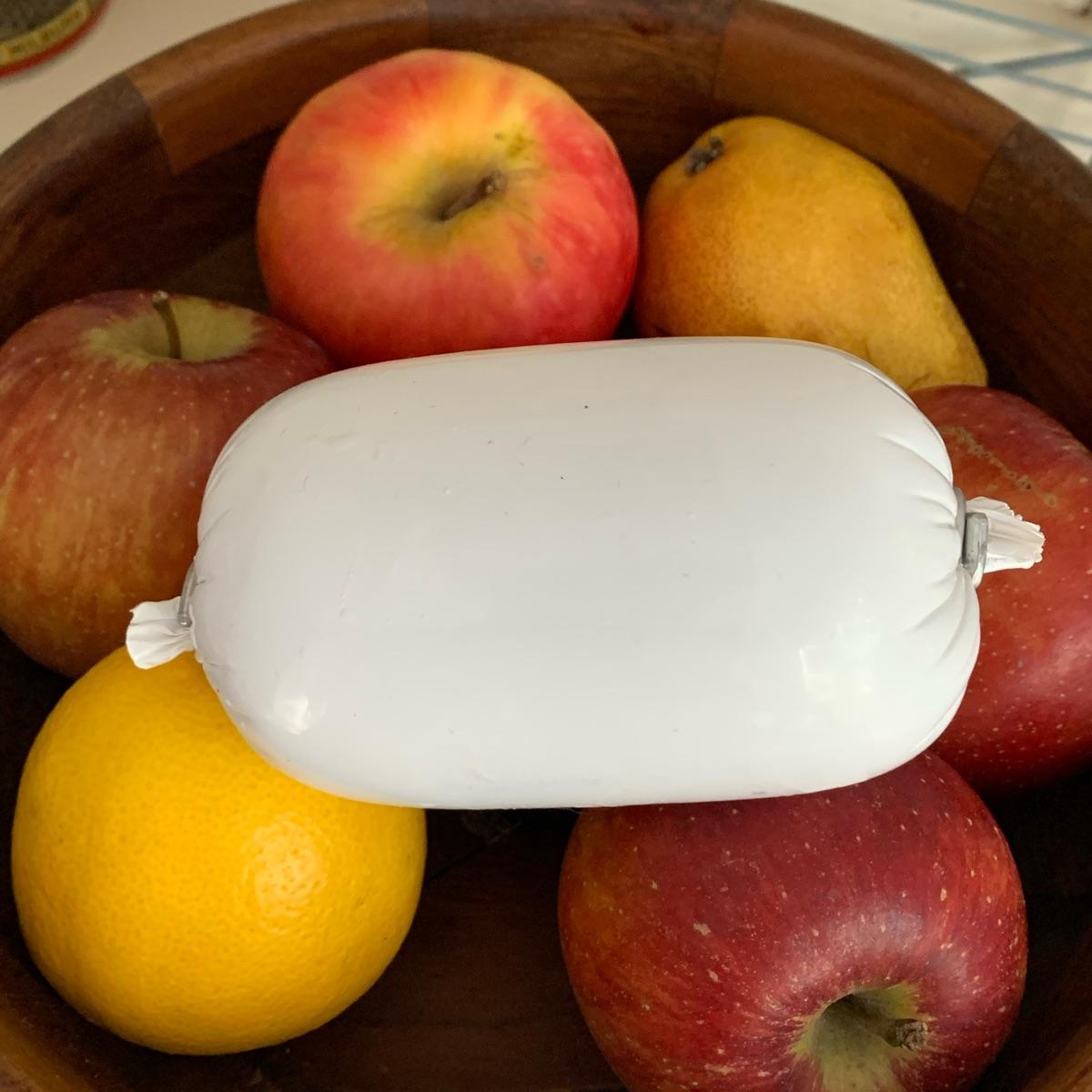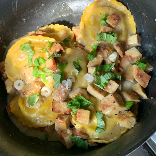 I was not expecting to find a sausage-like tube in the box. there was a funky odor when I opened it, but it went away after I diced it and browned it. this #seitan ended up having a nice flavor and texture. it went great as a ravioli topping.