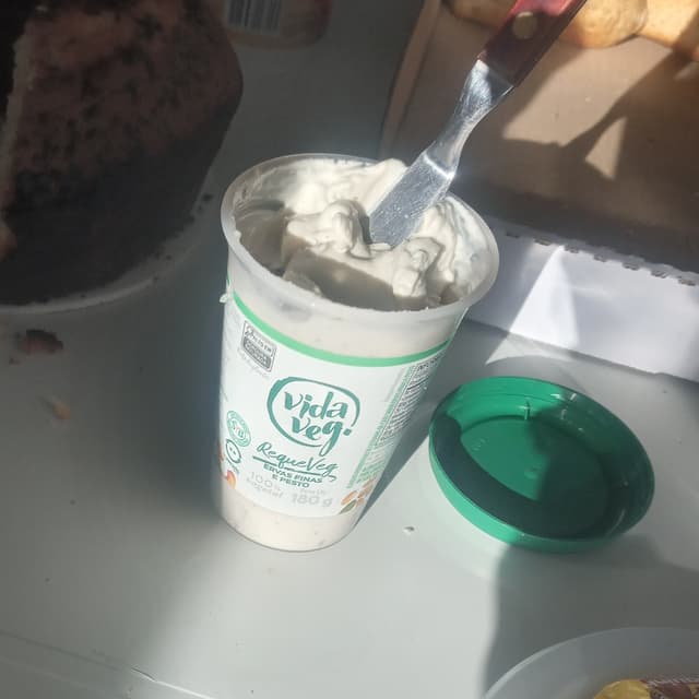 Requeijão vegano com ervas finas e pesto, feito de plantas e à base de castanha.