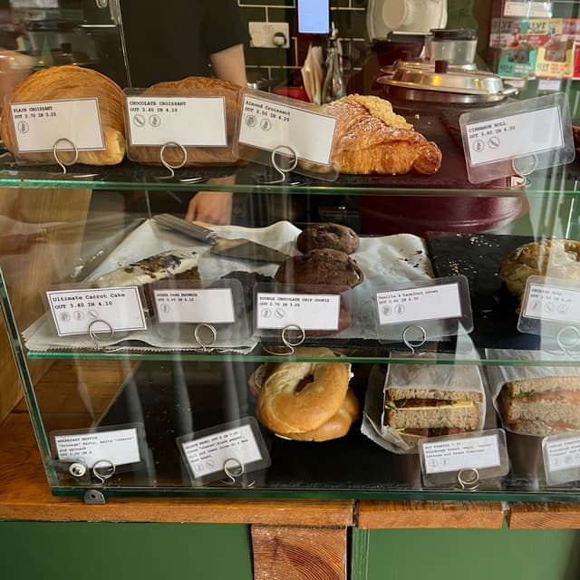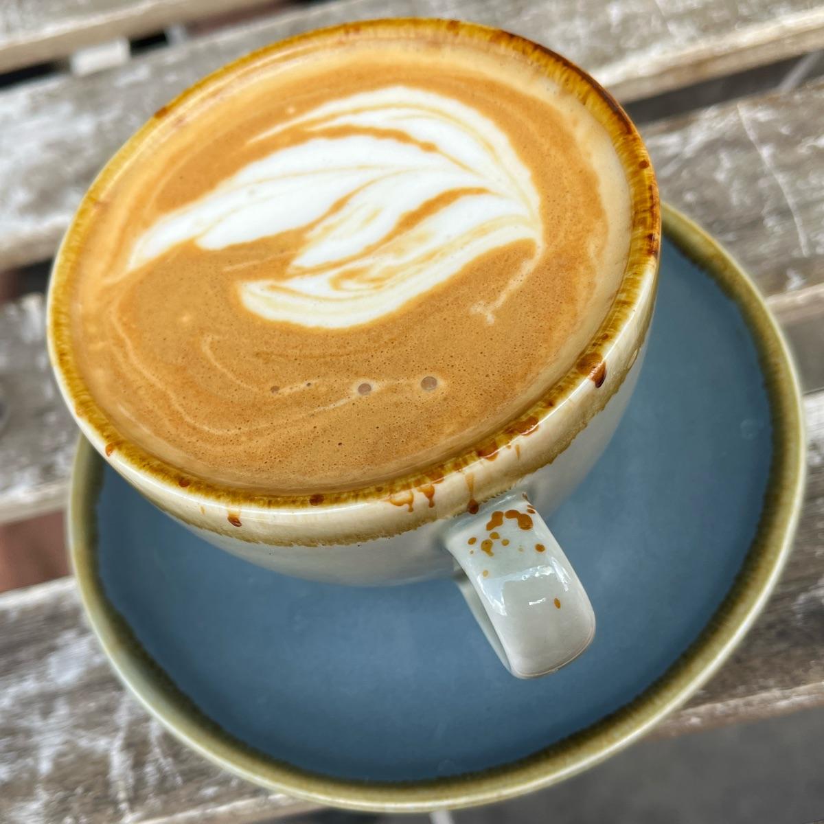 ☕️ Nice #decaf #oatmilk #latte. They have loads of #plantbased 🌱sweet 🥐and savory treats here but they also have veggie 🍰options too. I didn’t realise until looking more closely at my photos just now. It’s probably best to question and confirm these things when you visit which I often forget to do. Maybe they struggle with all the many ridiculously awesome vegan places in the neighborhood. #veganlondon #coffee #cafe
