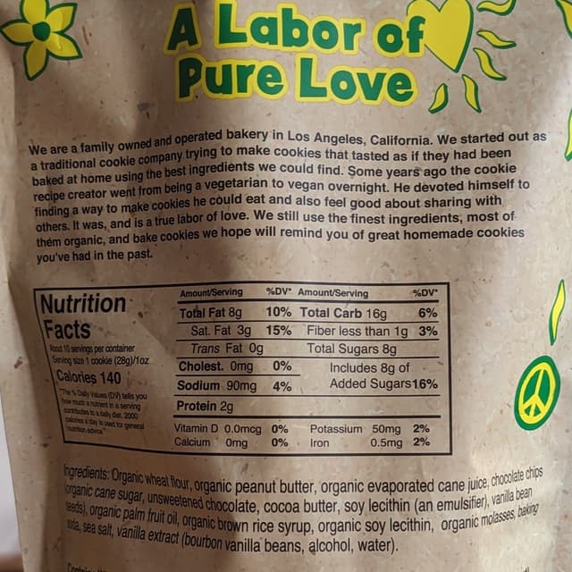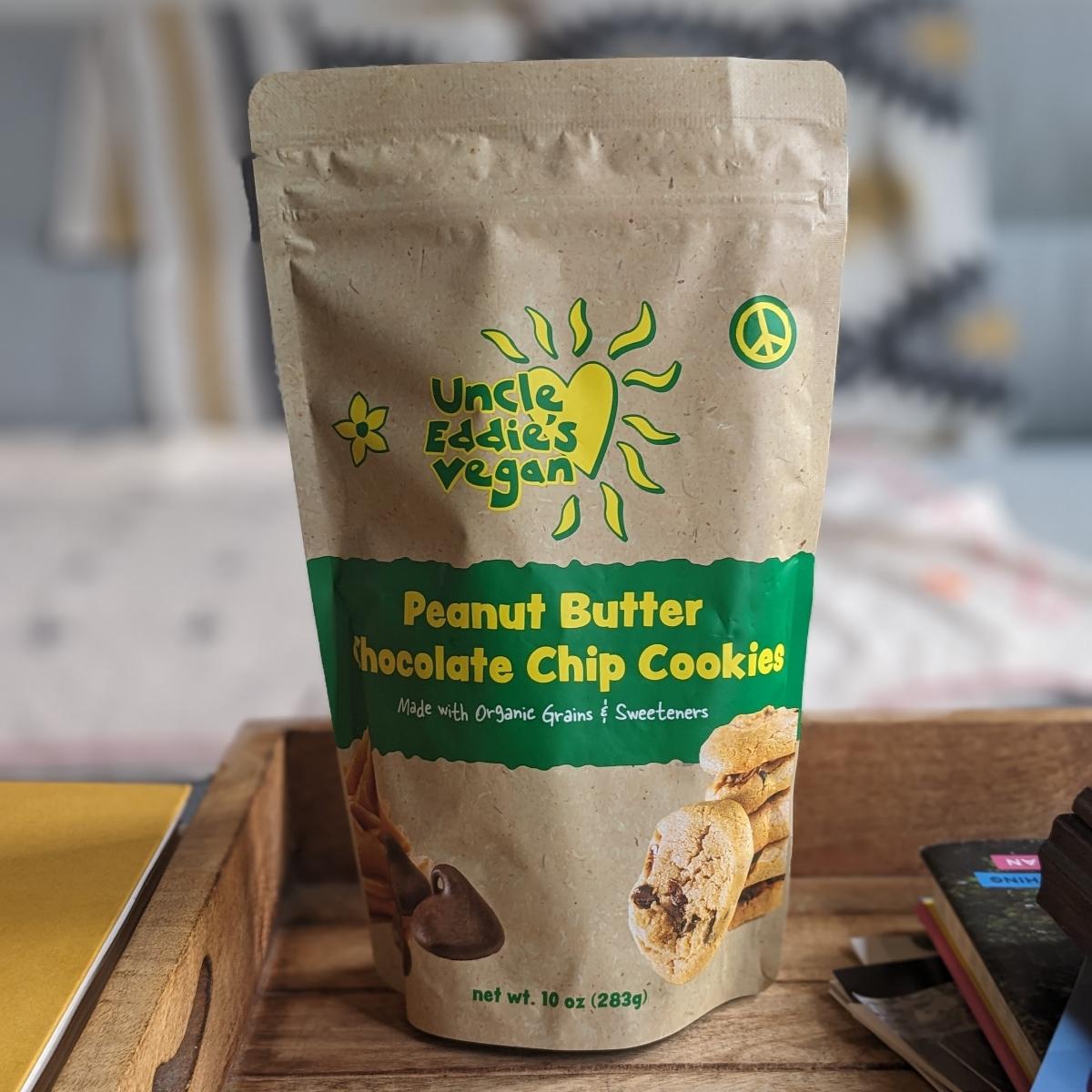 It's so exciting to see a bag of cookies that are vegan! These are decent-sized peanut butter cookies with chocolate chips. I'm glad that the peanut butter flavor comes through. It's much lighter than it would be if they were homemade, but it's still a nice quick thing to grab. These are a bit crumbly and messy to eat, but they don't completely fall apart. I enjoyed eating them on their own, but I did have fun making a s'more with them one night!