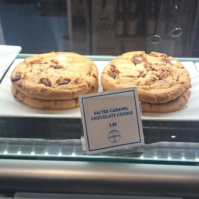 I did not like this cookie. It tasted like fake sugar and I don't know. Not for me. Jesse ate it for me. It was $2.85. It was #saltedcaramel #chocolatechipcookie