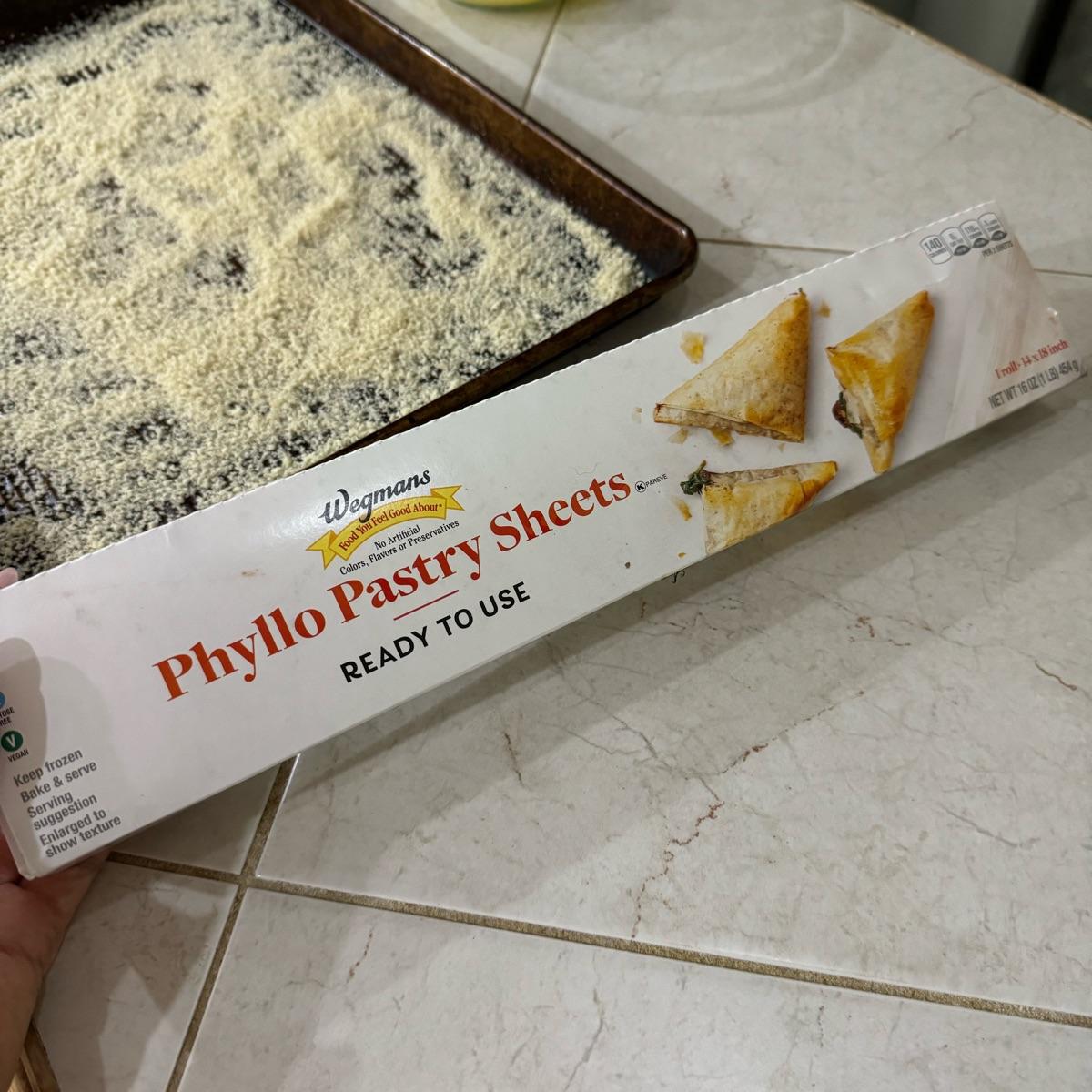 I recently used Wegmans Phyllo Pastry Sheets to make a batch of vegan spanakopita, and they turned out fantastic! These pastry sheets are perfect for achieving a light, crispy, and flaky crust. For best results, I recommend leaving the phyllo sheets in the refrigerator for at least 12 hours before using them. Then, take them out to thaw at room temperature for about two hours. One thing to keep in mind is that the sheets can dry out quickly. To prevent this, make sure to keep a cloth over the unused sheets while you you work. The spanakopita was a hit at our family vegan dinner night. I’ll definitely be using these sheets again! #phyllopastry #spanakopita