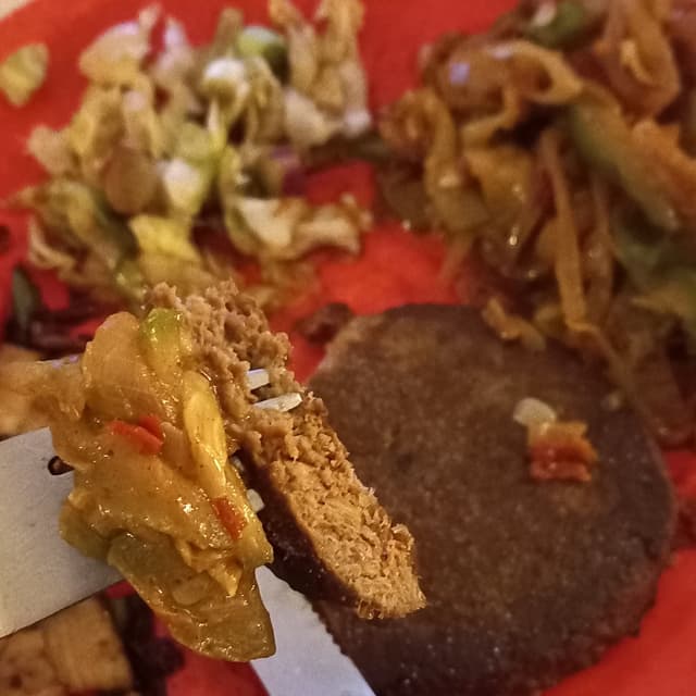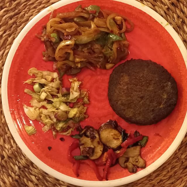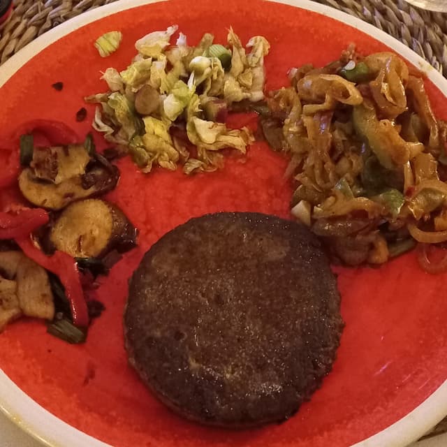 Muuy ricas y enormes, fuerte sabor a carne, tenia ganas de comer unas burgers.. La hice con champignons, morrones, ensalada de lechuga y verdeo y un panache de cebollas y zuchini . Una delicia.