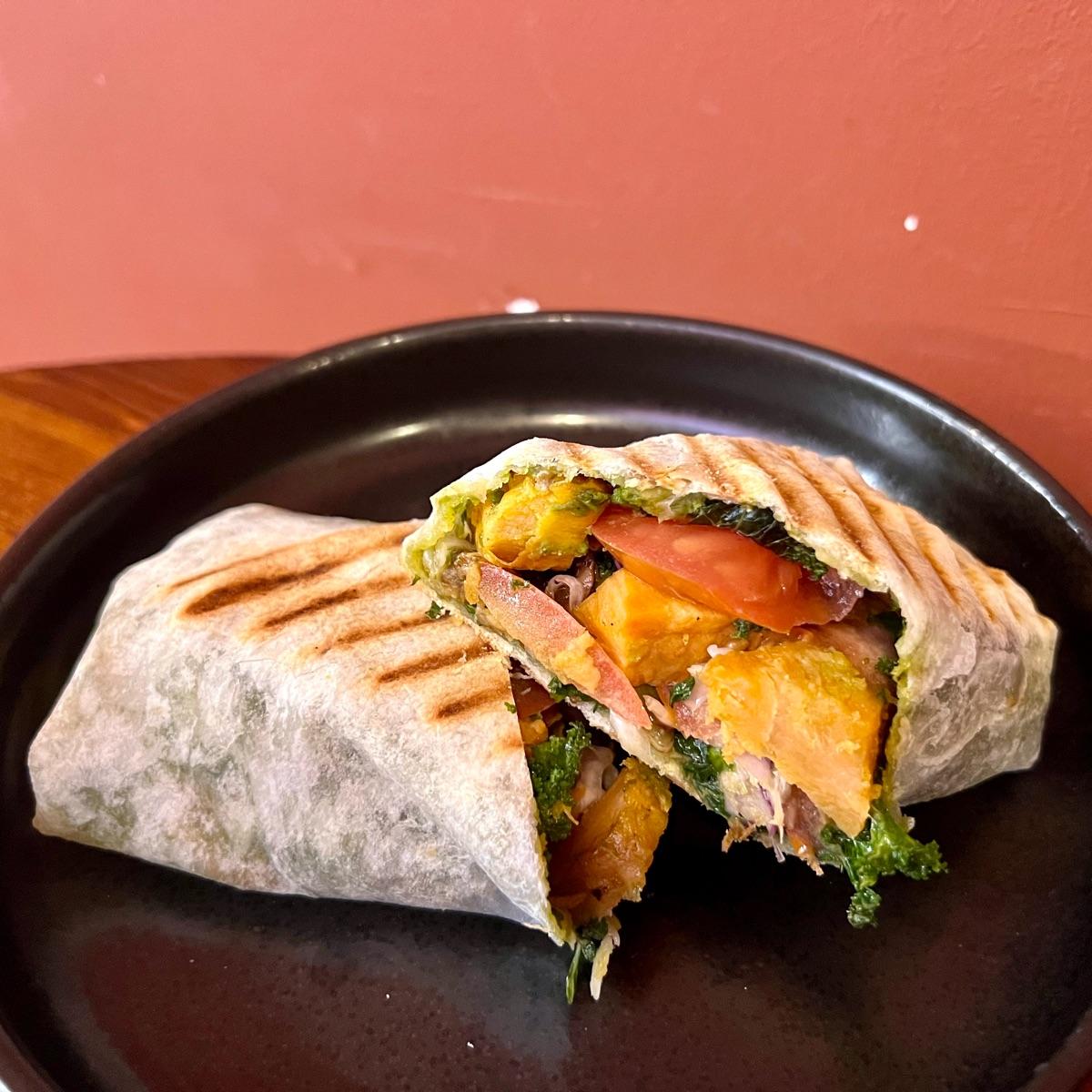 First time trying this burrito here! Consisting of Smokey tempeh, sweet potato, kale, slaw, cucumber, tomato, toasted pumpkin & sunflower seeds as well as moringa cashew pesto, all wrapped and nicely toasted in a burrito! Love the pesto sauce and how nicely toasted the burrito is! Really delicious!