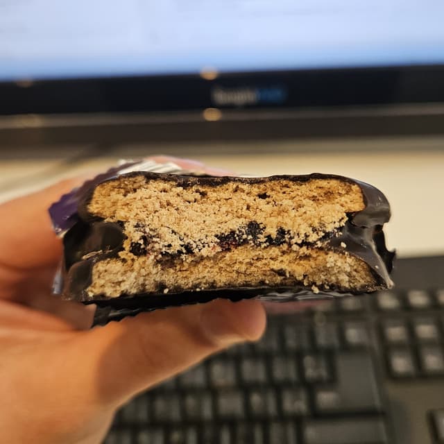 DELICIOSO! Me gustó muchisimo. Rico el chocolate, bien intenso y excelente combinación con el relleno de frutos rojos. Realmente recomendable
