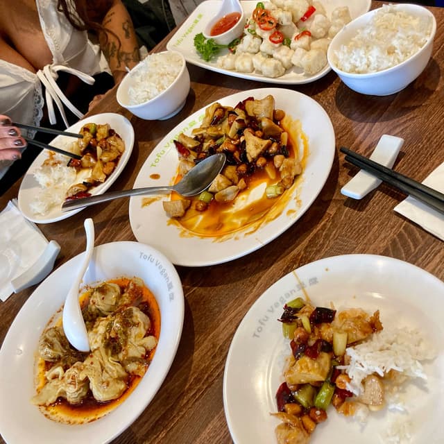 On the trip to #London we couldn’t miss out on some #Chinese food and we went to this excellent #veganrestaurant which was recommended to us (and which has the most #vegan name ever😁). The first dish was #gongbao chicken with #peanuts: the #mockmeat was super soft and flavourful and even if it was all a little bit too spicy for my low tolerance, I absolutely loved it!!