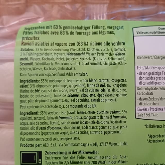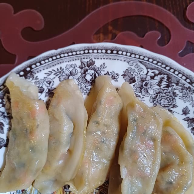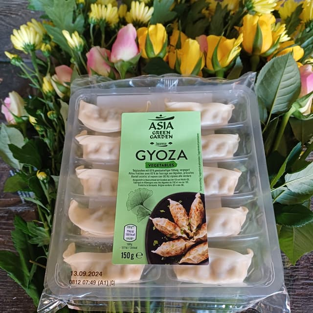 Per essere dei Gyoza prodotti industrialmente non sono male!! Li ho preparati in padella con un filo d'olio e d'acqua per "piastrarli" un pó. Bisogna stare attenti perché la sfoglia é sottile - tende a diventare quasi trasparente - e può rompersi in cottura. Sono ripieni di sole verdure miste e c'é un pizzico di peperoncino.