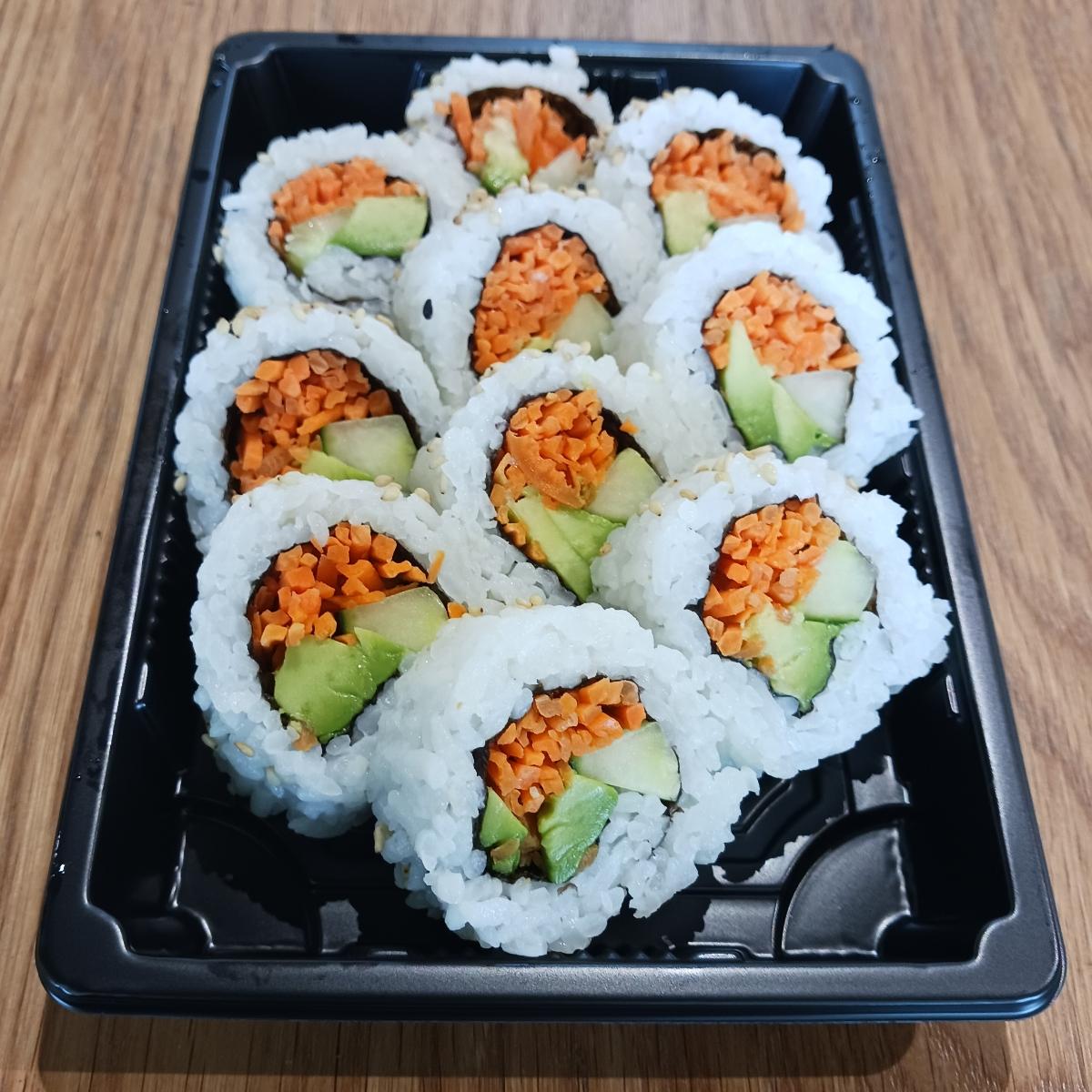 This roll is served fresh and is a filling lunch. The sweetness of the carrots is comforting. I have been craving avocado for days and this meal satisfies my craving. #sushiroll