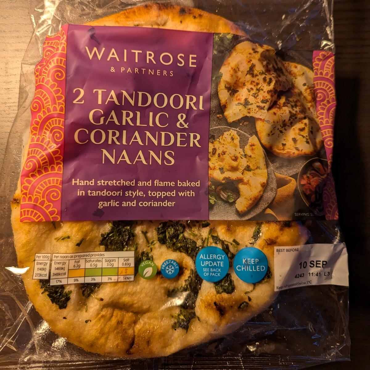Another tasty naan!! I unfortunately find coriander tasted like soap to me but my partner enjoyed it very much 🌱 The garlickyness was super yummy. They are small but thick and you get two in a pack for £2.75. Nice to have with curry, and it's good to see more places making their naans vegan!! 💚