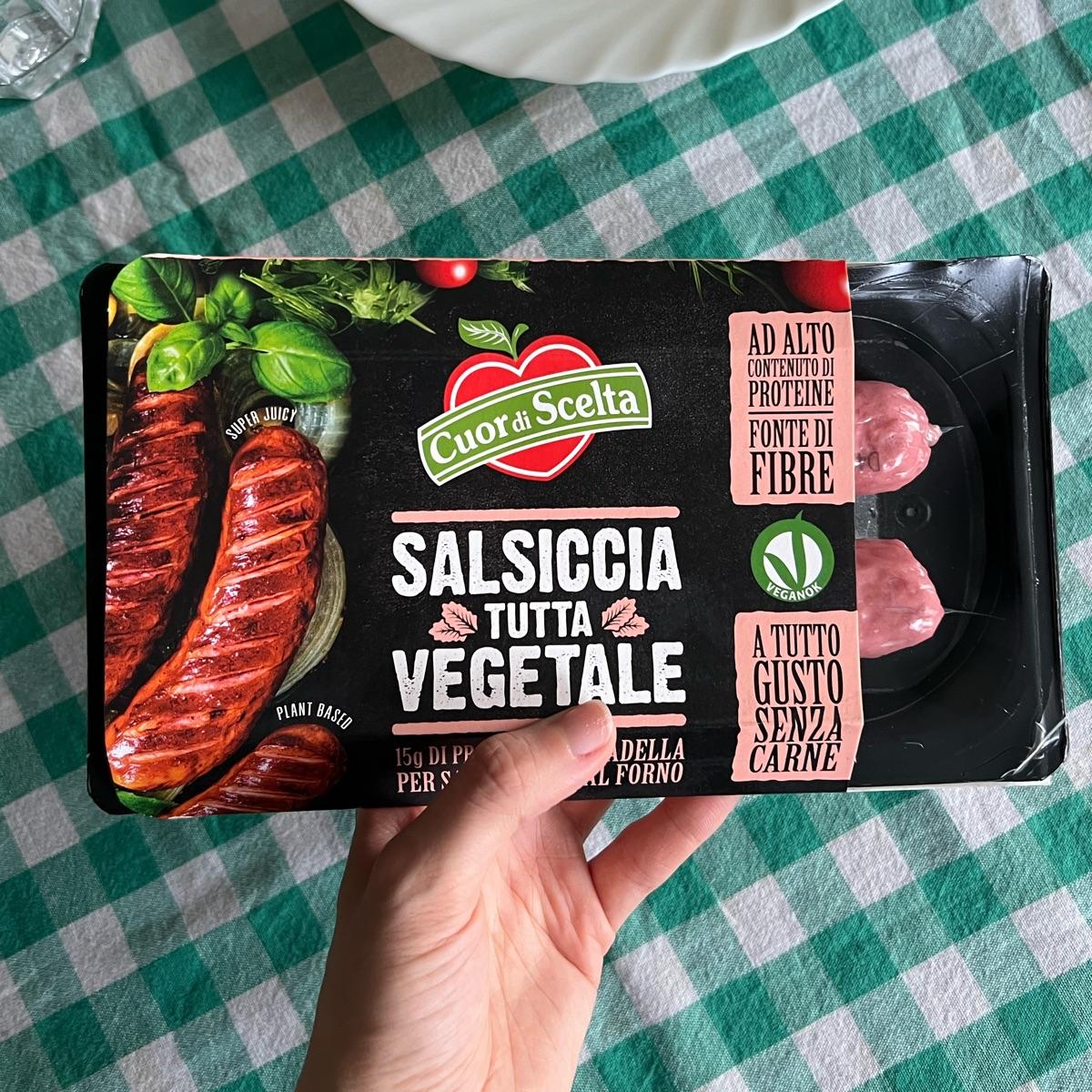Salsiccia vegetale presa al D più, molto buona e gustosa, l’ho usata per farcire un hot dog. Prezzo sui 3,50€ circa.