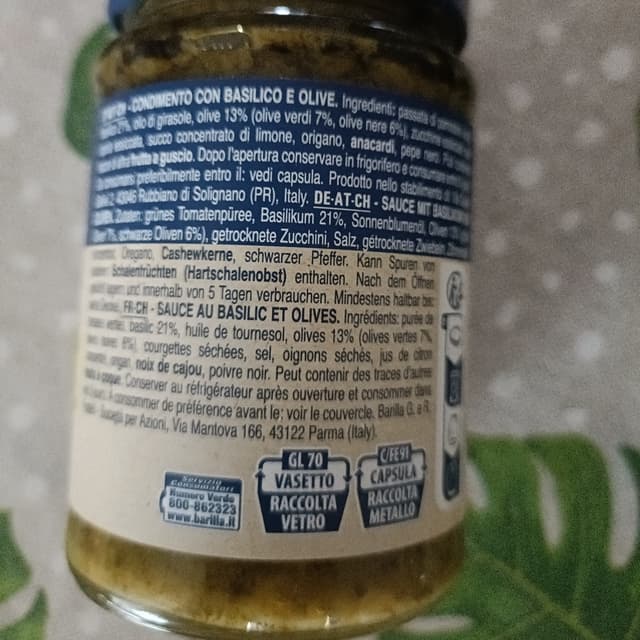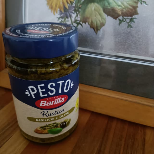 Ottimo pesto pronto, le verdure sono tagliate grossolanamente e le olive a rondelle, saporito e gustoso: io non aggiungo sale all'acqua della pasta.