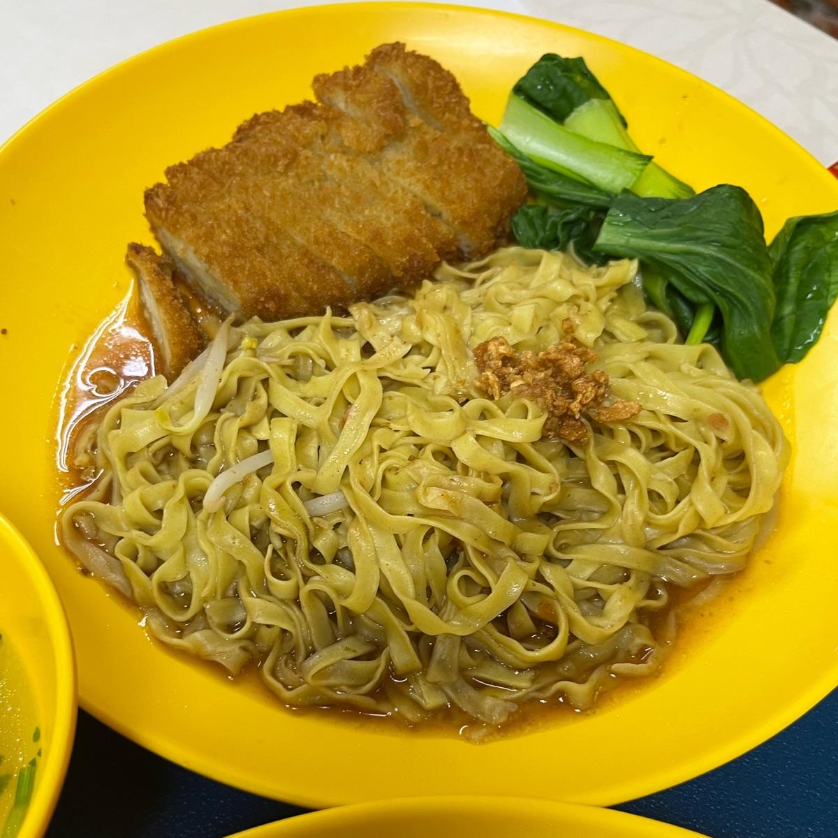 The crispy vegan chicken cutlet was massive and tasted soo good! #veganchicken #noodles #fortunecentre #