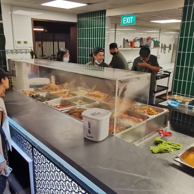 Lor mee is boiled thick yellow wheat noodles in a soup that has soy sauce and vinegar. It comes with mung bean sprouts, soy bean skin and tastes nice. It costs $4 per bowl. The vegetarian restaurant or food court is self service and has a rice and mixed vegetables, noodles, and western stalls. Wheelchair access is via a lift from the Buddhist temple above. It is air conditioned and has toilets.