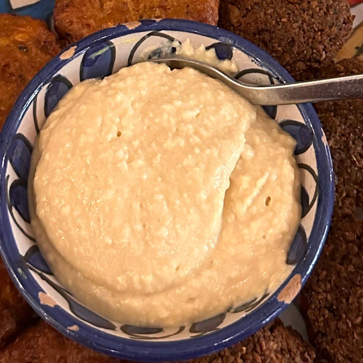 gusto 3/5. basico, nulla di particolare (non che sia un male) e purtroppo i ceci mi sono parsi utilizzati con la loro pellicina esterna (o comunque non frullati in modo da ottenere quasi una crema liscia) e di questo ne risente la texture imo, poi zero olio o spezie o boh chicchi di melograno sopra..