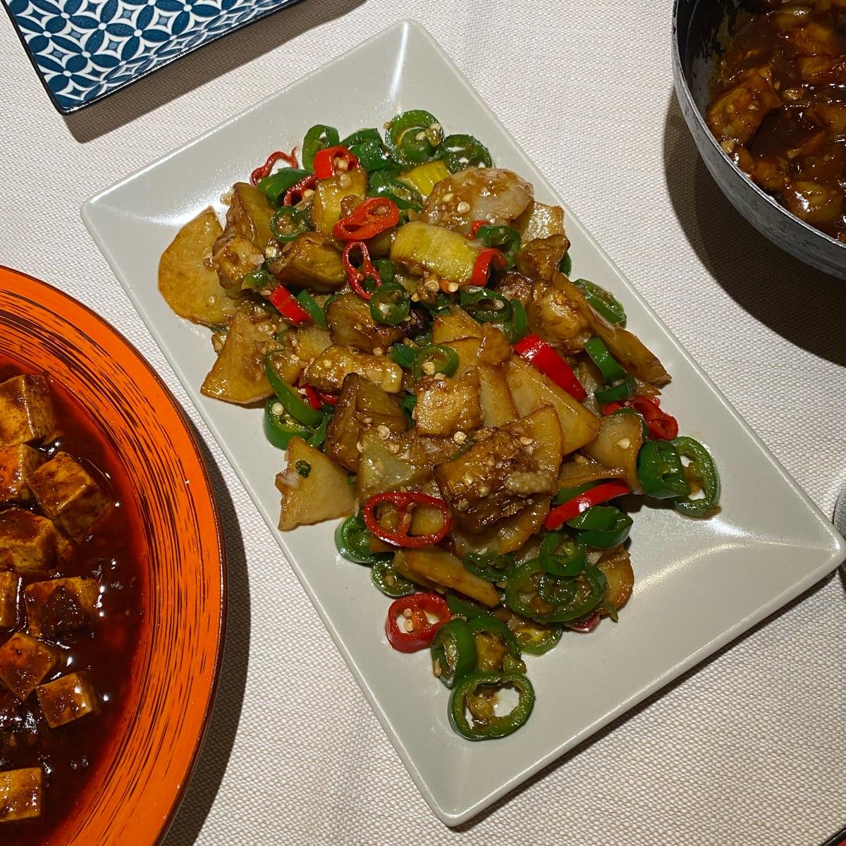 8,5€ melanzane con peperoncini, non so perché sul menu siano segnati solo come un 🌶️ di piccantezza quando il tofu era 🌶️🌶️ e a noi sembrava più abbordabile, comunque molto buono ma davvero piccantissimo madonna ci abbiamo messo quasi due ore a cenare per via della piccantezza che ci rallentava 😭 probabilmente se tornassi indietro nel tempo lo rifarei lo stesso perché era buono ma che fatica ahah c’è da dire che non sono così tanto abituato al piccante però ahshs