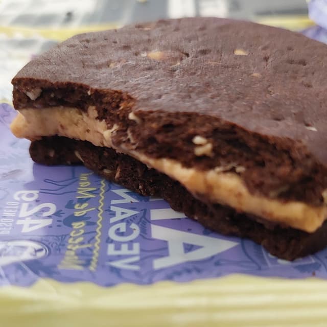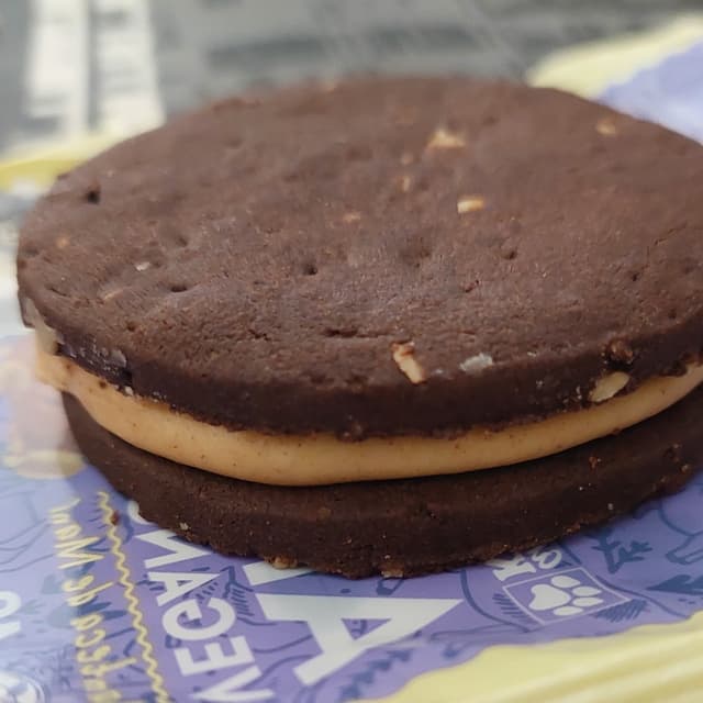 Alfajor relleno de pasta de maní. Esta bueno, un poco seco. La galleta está buena, pero la pasta de maní le falta un poco de sabor, para mi gusto. #alfajor #pastademani #animalkind