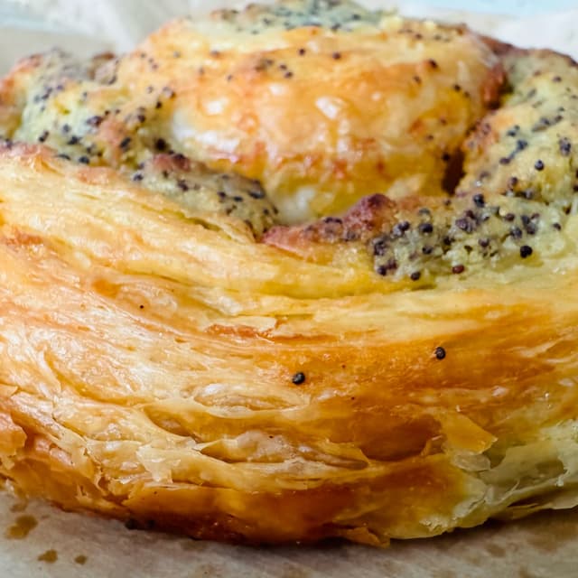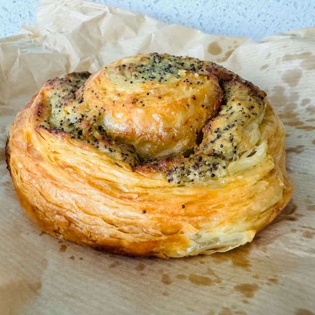 Amazing pastry’s as always, crisp, flakey and delicious! I mean look at them laminated layers! 🤤 Lemon flavours were beautifully subtle along side the poppy seeds. I should have put my hand in for reference as these were huge! (But to good to share)!