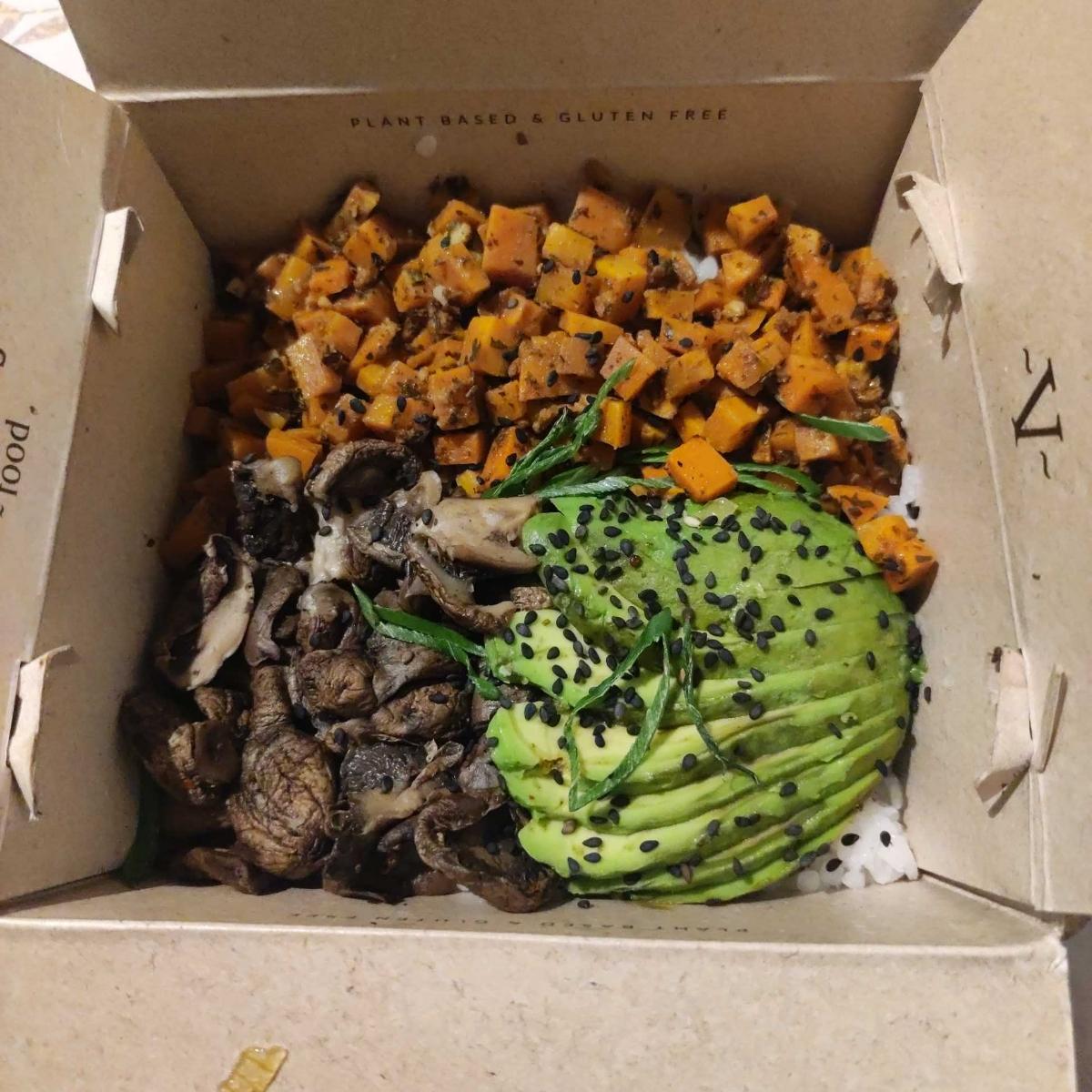 Sinceramente es el poke más flojo de todos los que probé. Los hongos están muy secos y le falta algo más untuoso. Mejor pedir los que tienen queso crema de cajú.