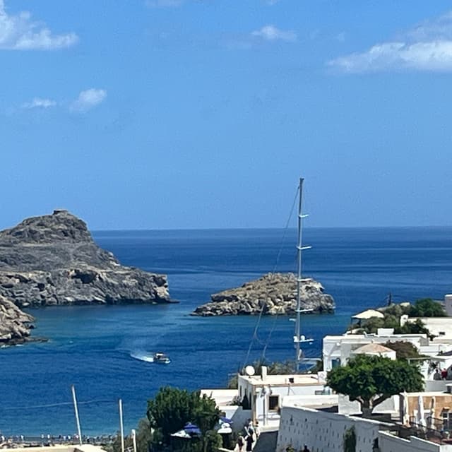 T Veg is a roof top terrace overlooking Lindos bay. Highly recommend.
